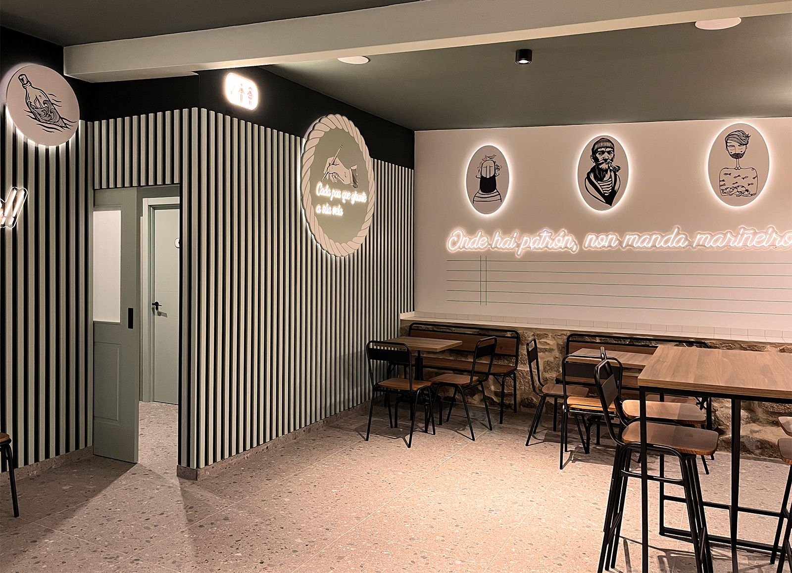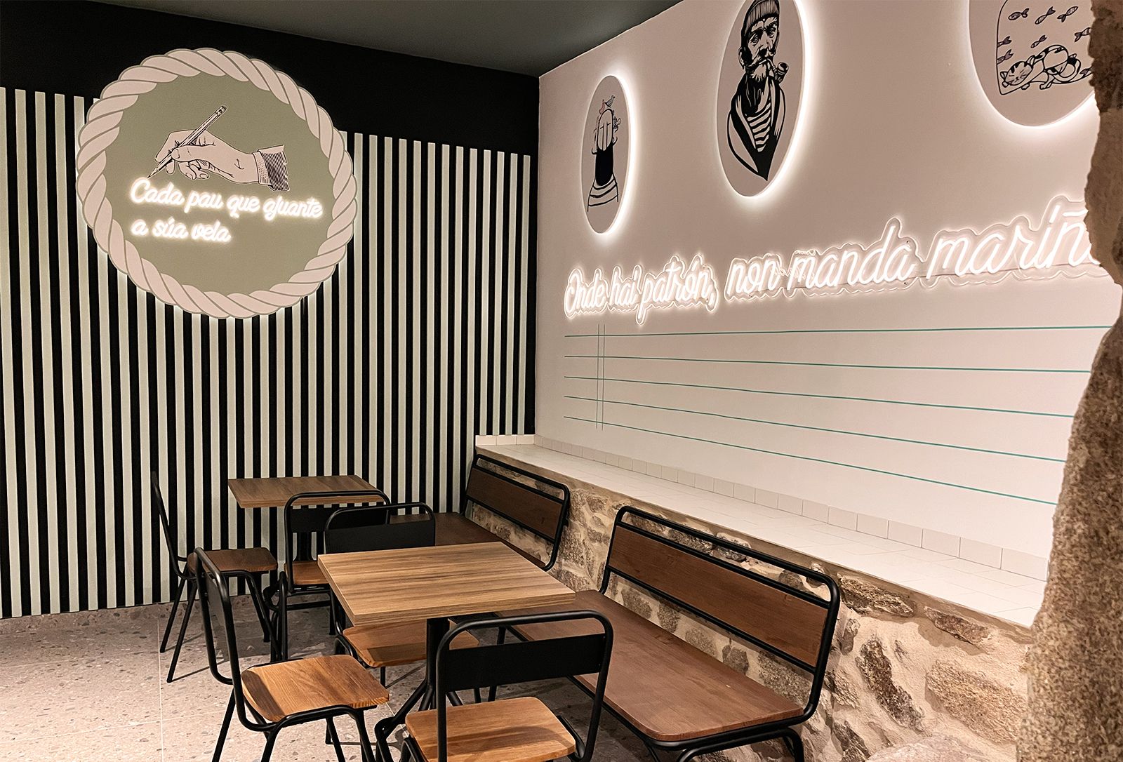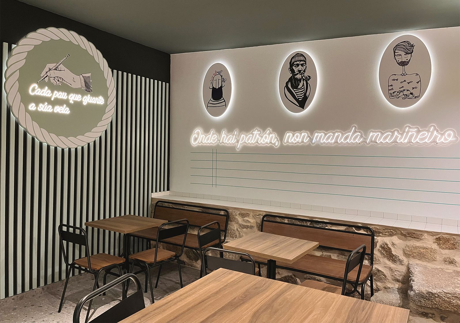 Un interiorismo que se moldeó con esa temática "caligráfica" bajo un prisma de pueblo marinero arraigado a su propia historia.